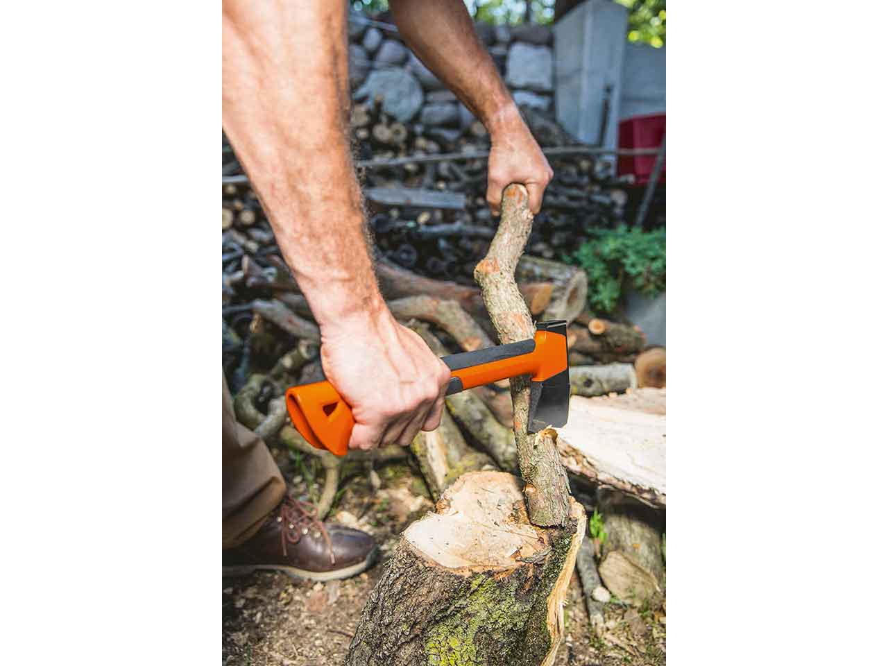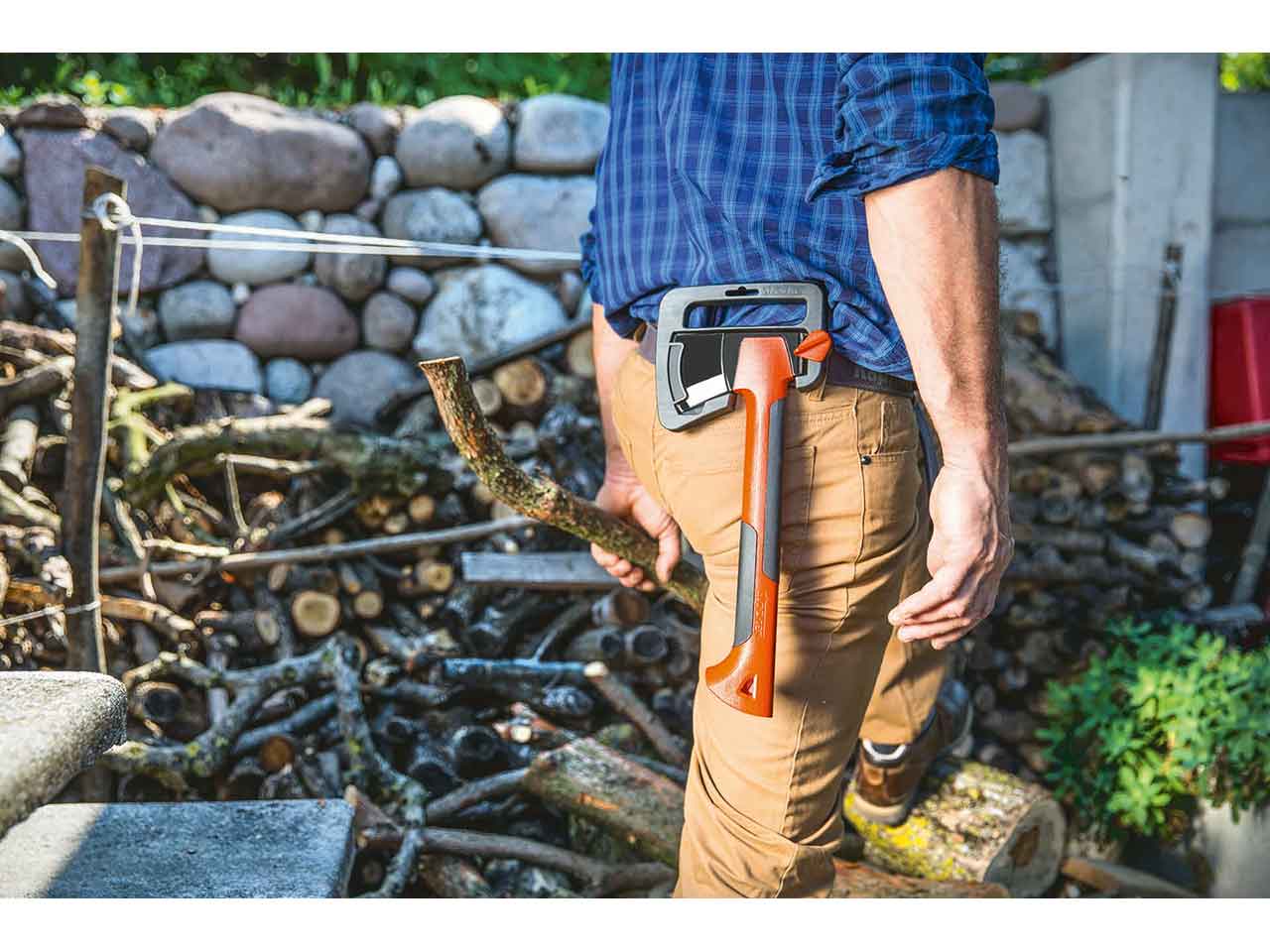 >Cabeza de acero al carbono con revestimiento antifricción. Mango ligero de nylon y fibra de vidrio con interior vacío que reduce las vibraciones. Funda con lazo para cinturón.