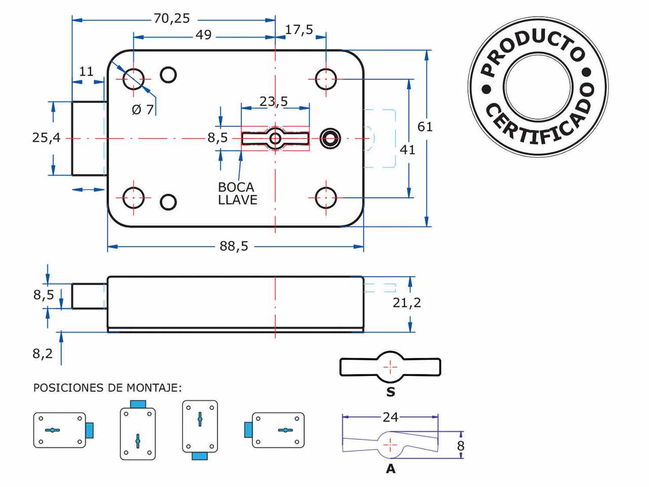 >Posibilidad de amaestramiento e igualamiento. Recorrido de palanca 11 mm. Se suministra con 2 llaves AGA-15G