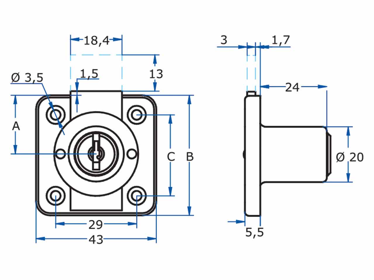 >Cilindro de zamak. Giro derecha dos salidas de llave. Se suministra con 2 llaves.