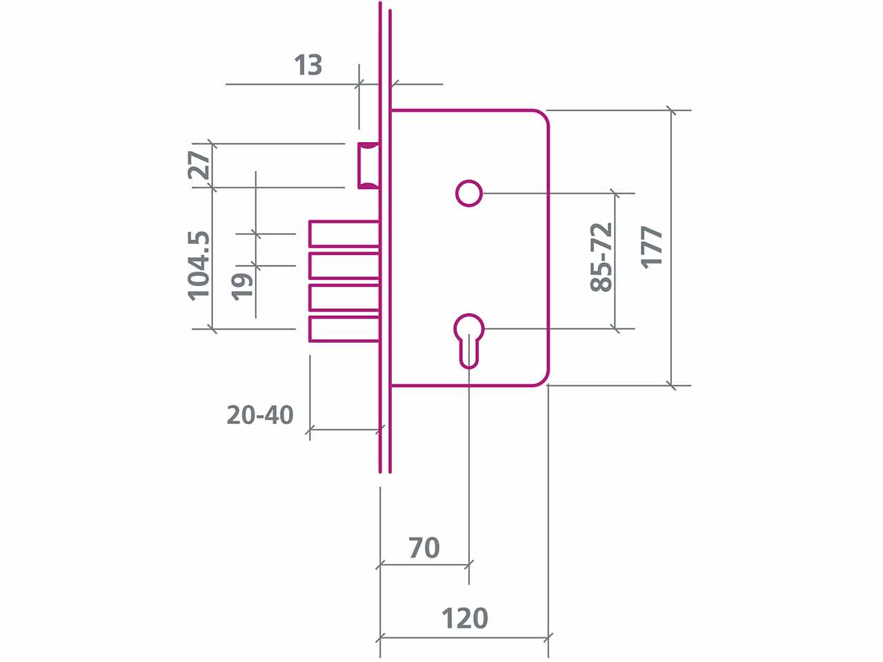 Catálogo / CerrajerÍa / Cerraduras / Cerradura central ezcurra para 9040/9044 placa “u”