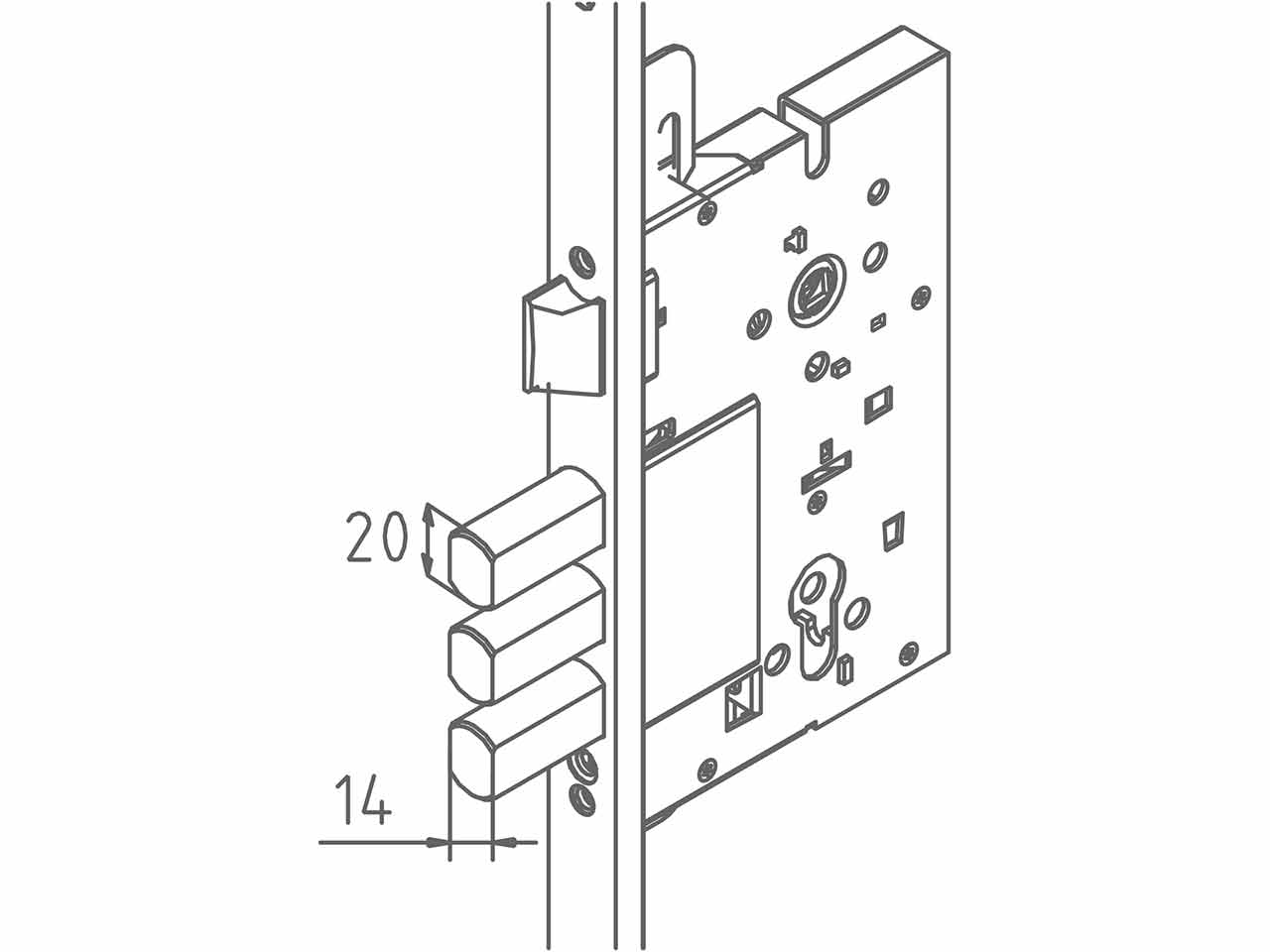 >Alta resistencia al apalancamiento. Picaportes y bulones niquelados.Caja cerrada de acero. 3 vueltas.