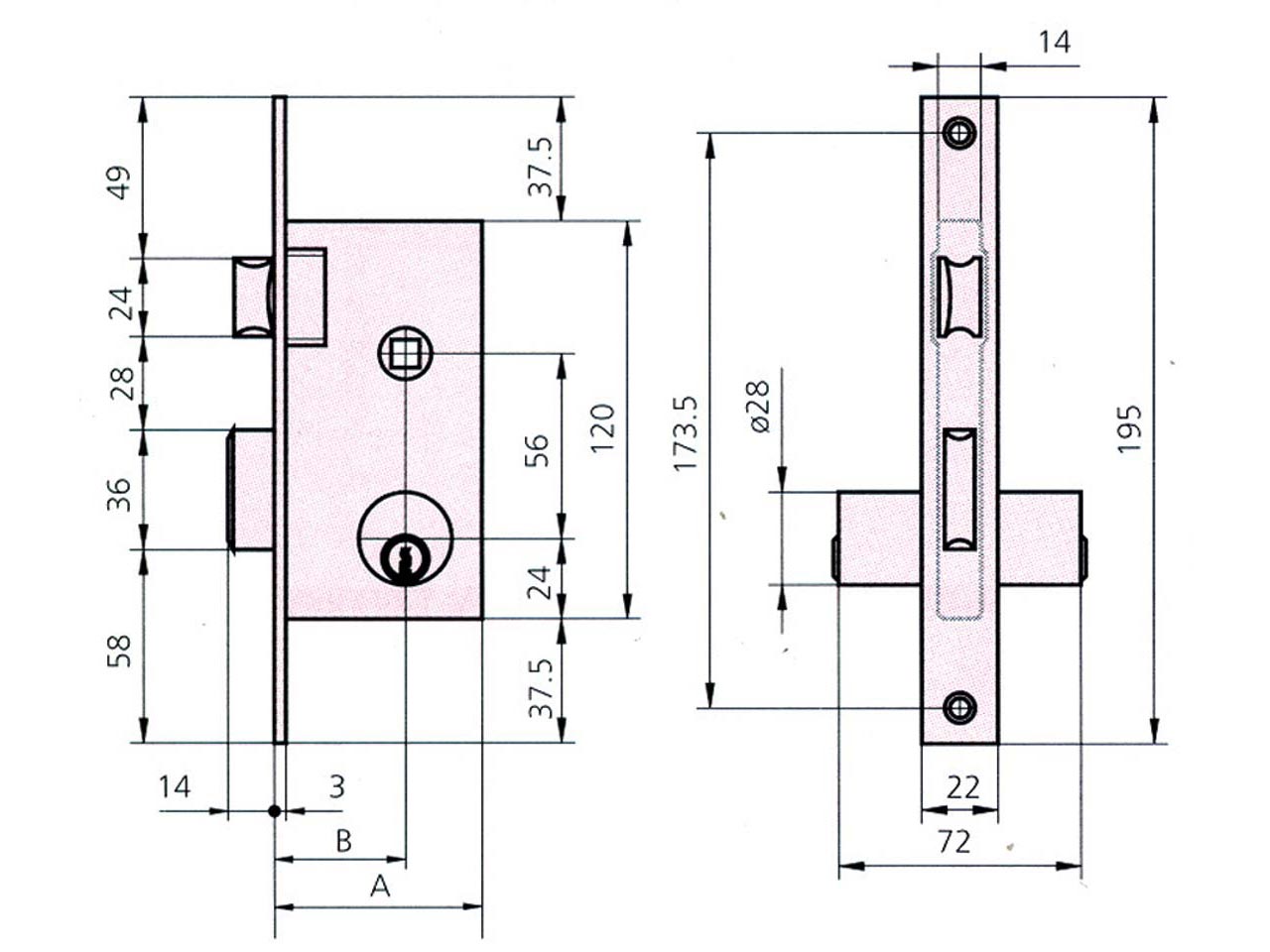 >Picaporte reversible accionable mediante llave y manilla. Cuadradillo de 8mm. Palanca deslizante accionada por llave. Caja y cubierta de hierro zincado.
