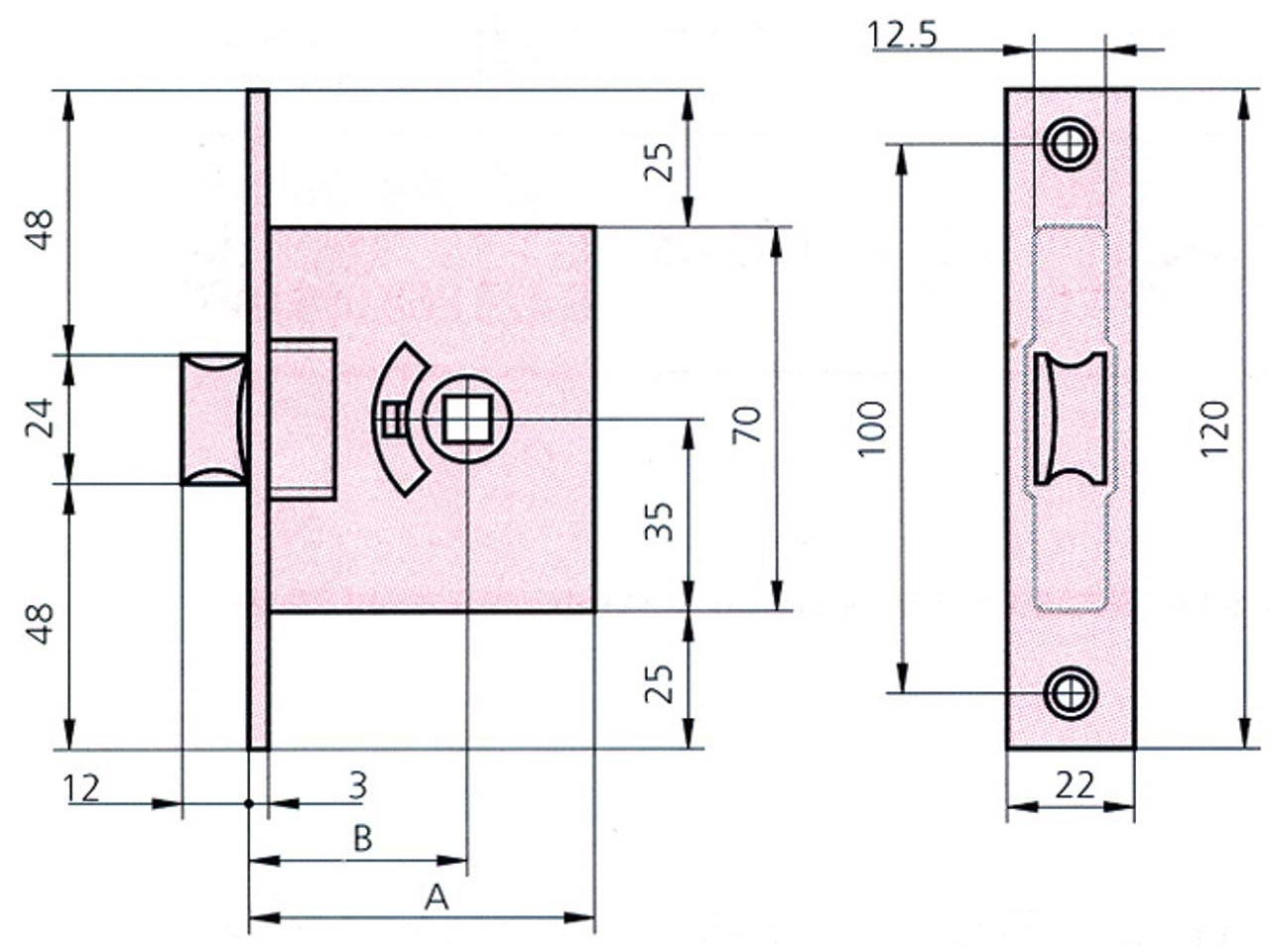 >Picaporte reversible accionable mediante manilla. Cuadradillo de 8 mm. Caja y Cubierta de hierro zincado.