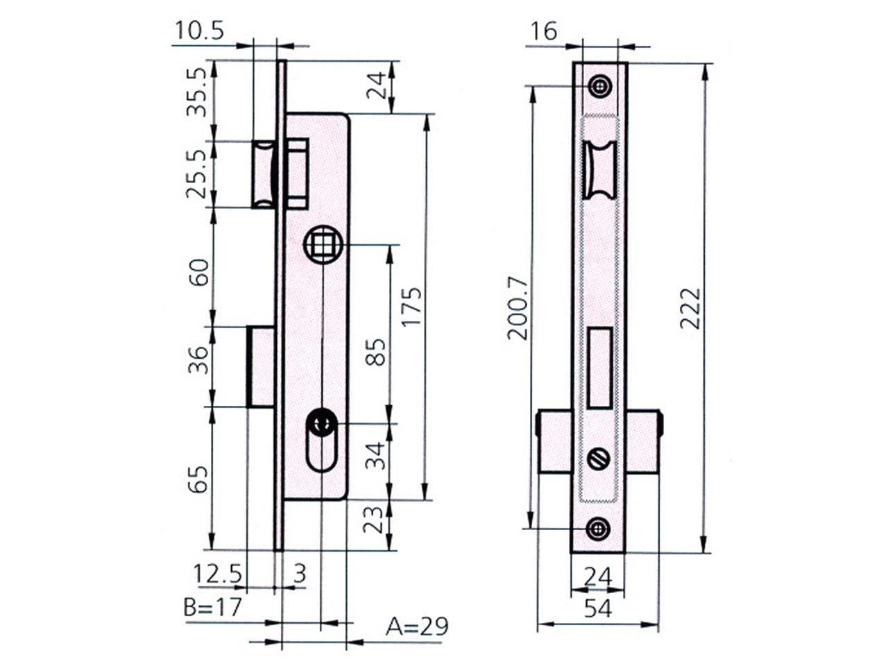 >Picaporte reversible de latón accionado por llave y manilla. Cuadradillo de 8mm. Palanca deslizante de latón accionado por llave. Caja y cubierta de hierro zincado.