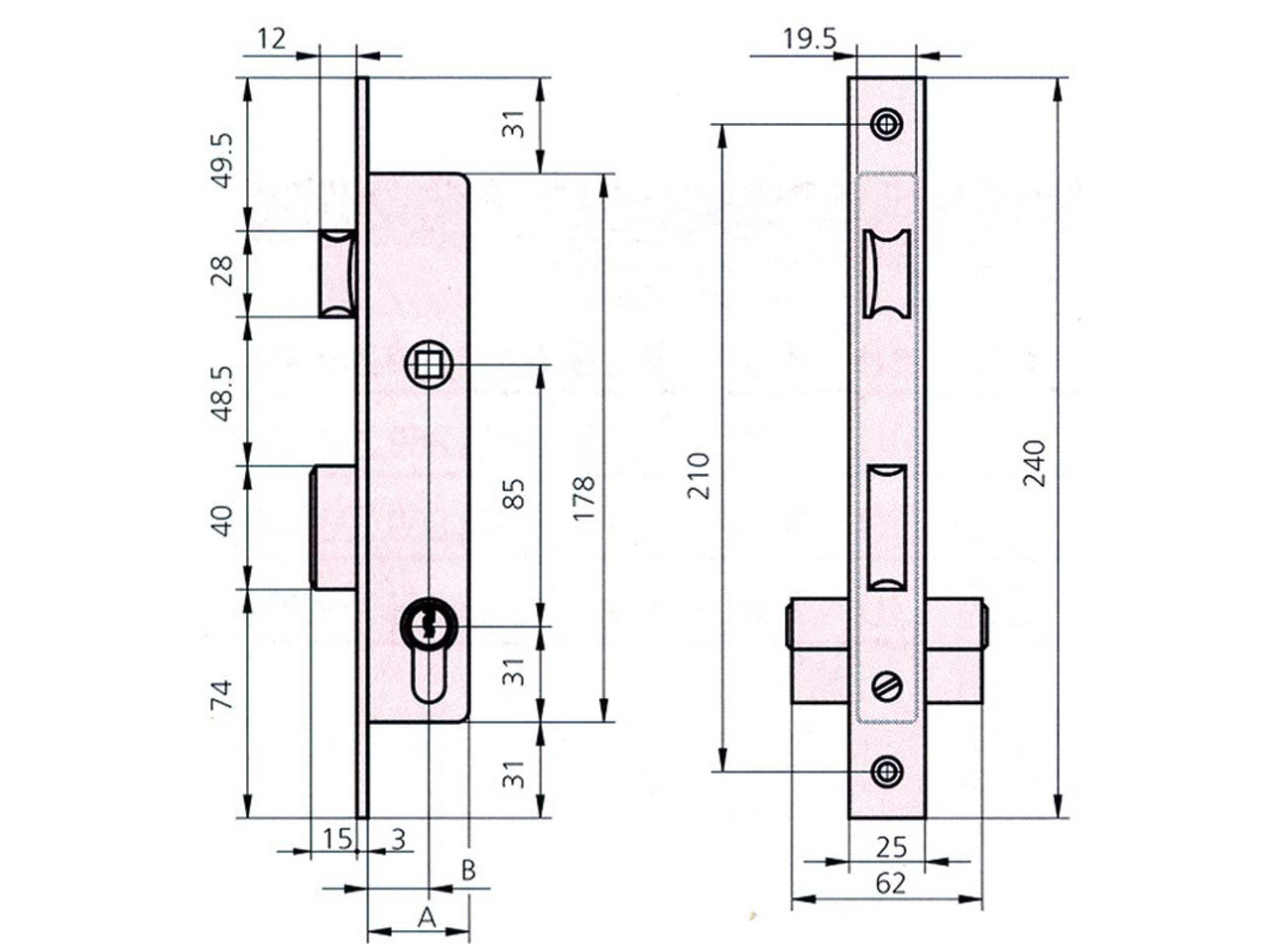 >Picaporte reversible accionado por llave y manilla. Cuadradillo de 8mm. Palanca deslizante accionada por llave. Caja y cubierta de hierro zincado.
