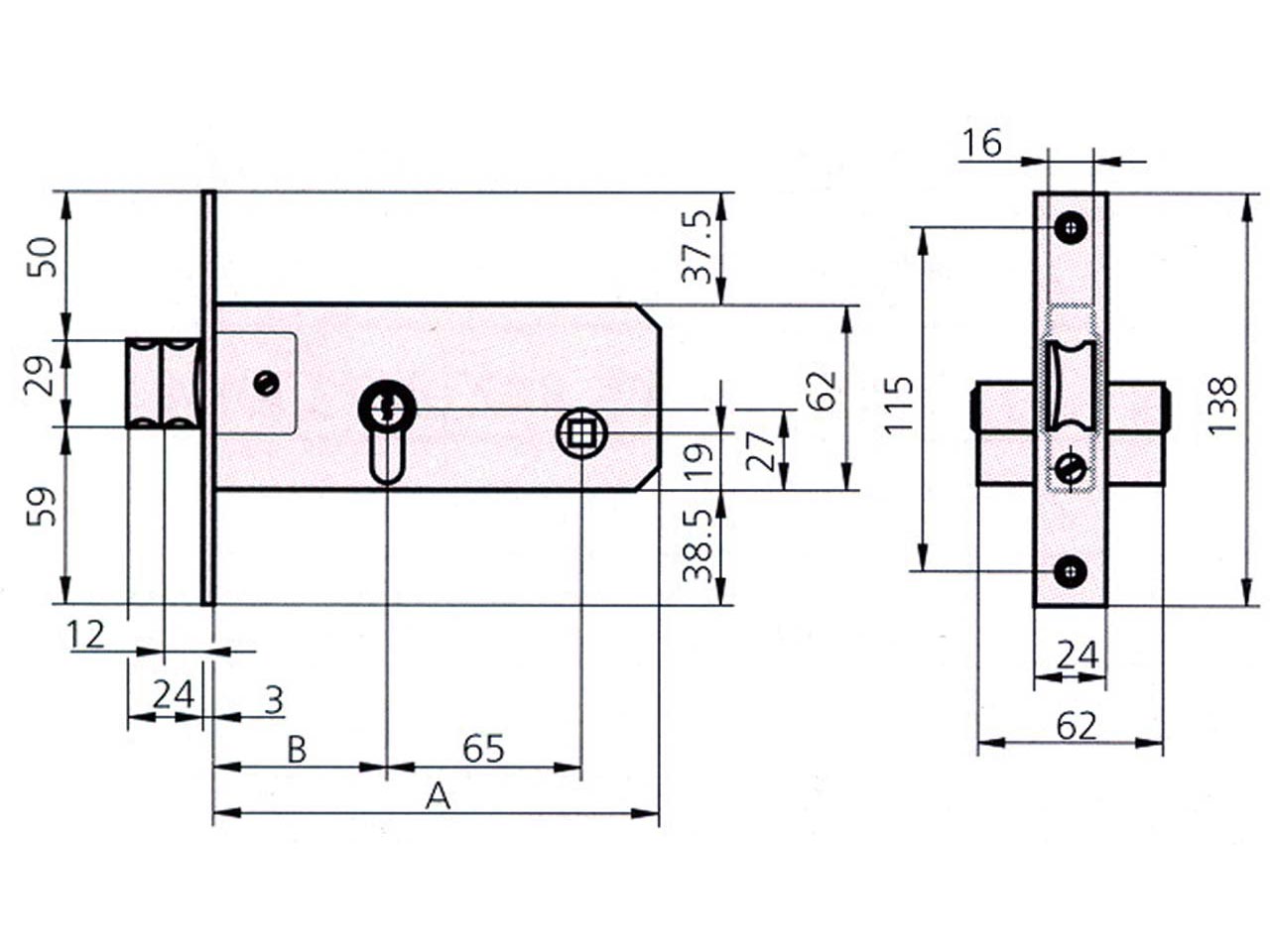>Picaporte extensible y reversible. Accionamiento extensible con llave. Accionamiento del picaporte con llave y manilla. Cuadradillo de 8mm. Caja y cubierta de hierro zincado.