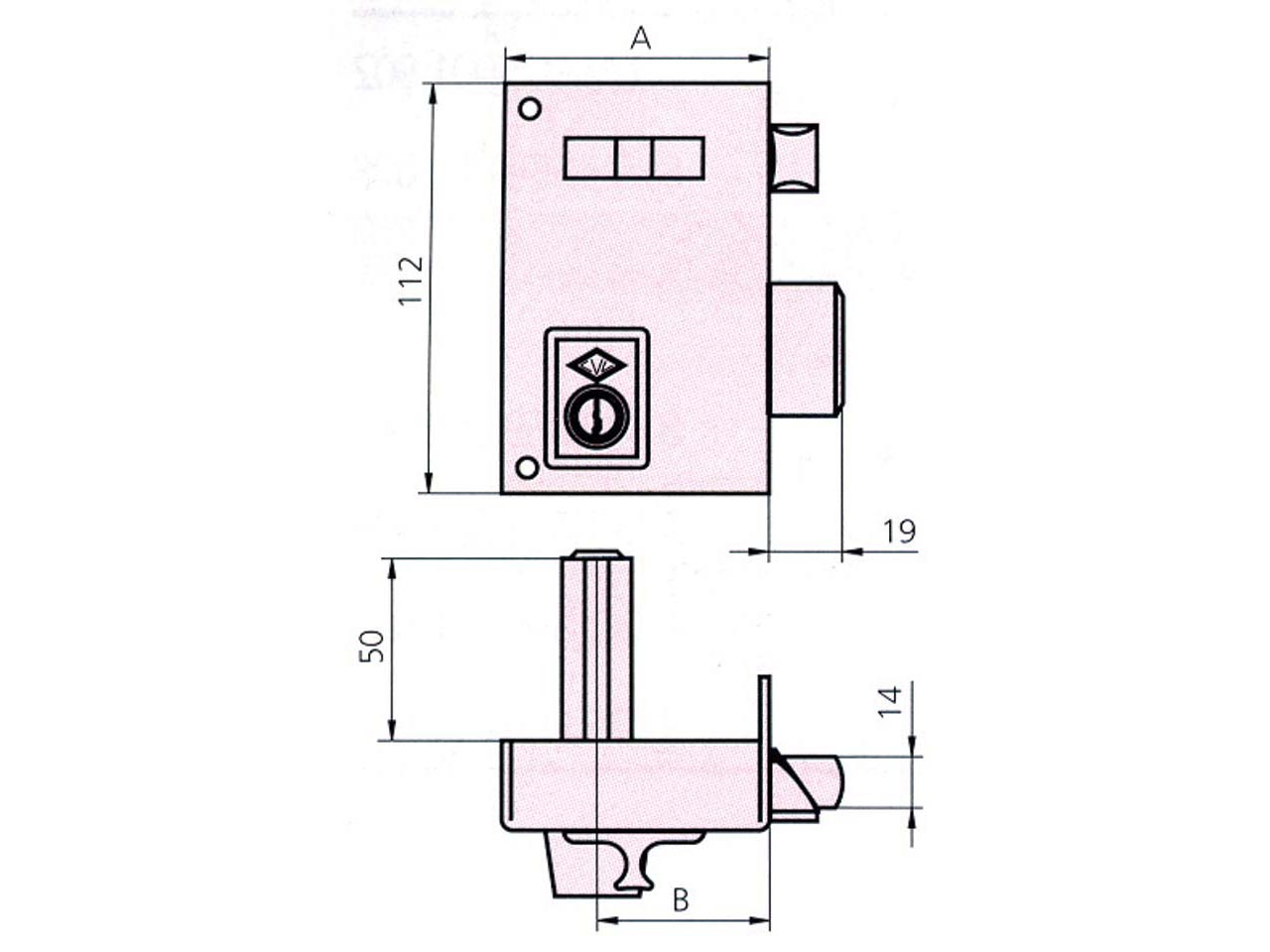 >Picaporte accionado por llave exteriormente y con llave y tirador desde el interior. Palanca de una vuelta de llave accionable por ambos lados.Nota: 56A-cilindro pera, 156A-cilindro redondo.
