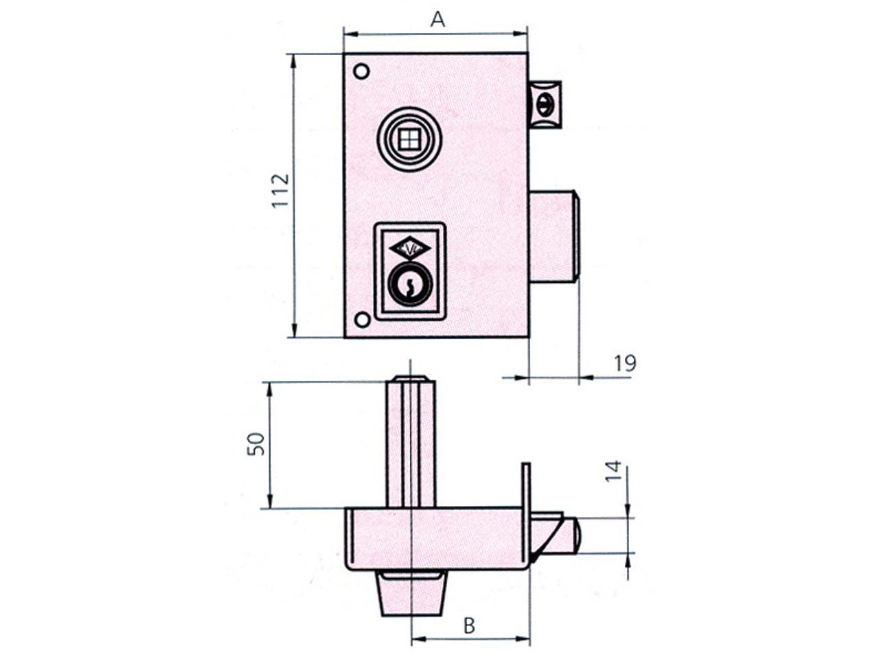 >Picaporte accionado por manilla por ambos lados. Palanca de una vuelta de llave accionable por ambos lados.Nota: 56BR-cilindro pera, 156BR-cilindro redondo.