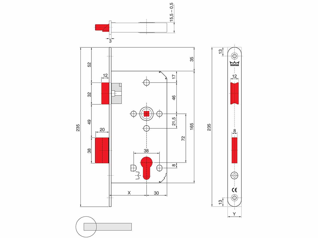 >Para cilindro de perfil europeo. Resbalón reversible accionado por manilla y cilindro, palanca accionada por cilindro. Medida centros: 72 mm. Acabado en acero inoxidable. No guarda mano. Frente atornillado AISI 304. Grado 2 UNE EN 12209, CE. INCLUYE CERRADERO de 24