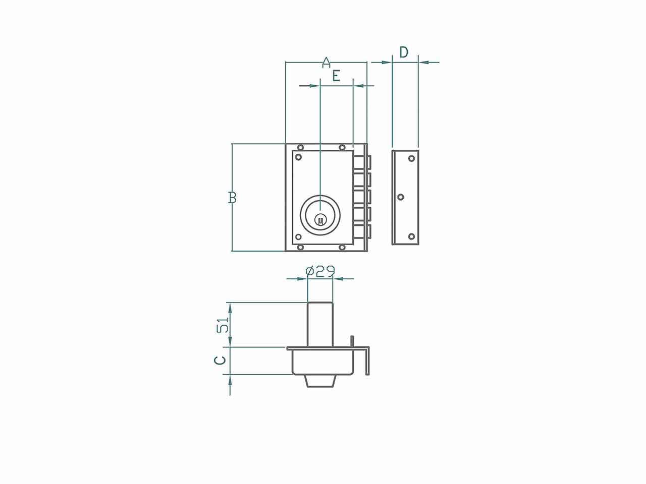 >Cilindro fijo. Cinco pestillos de acero inoxidable con dos vueltas. 5 llaves de alpaca de doble dentado.