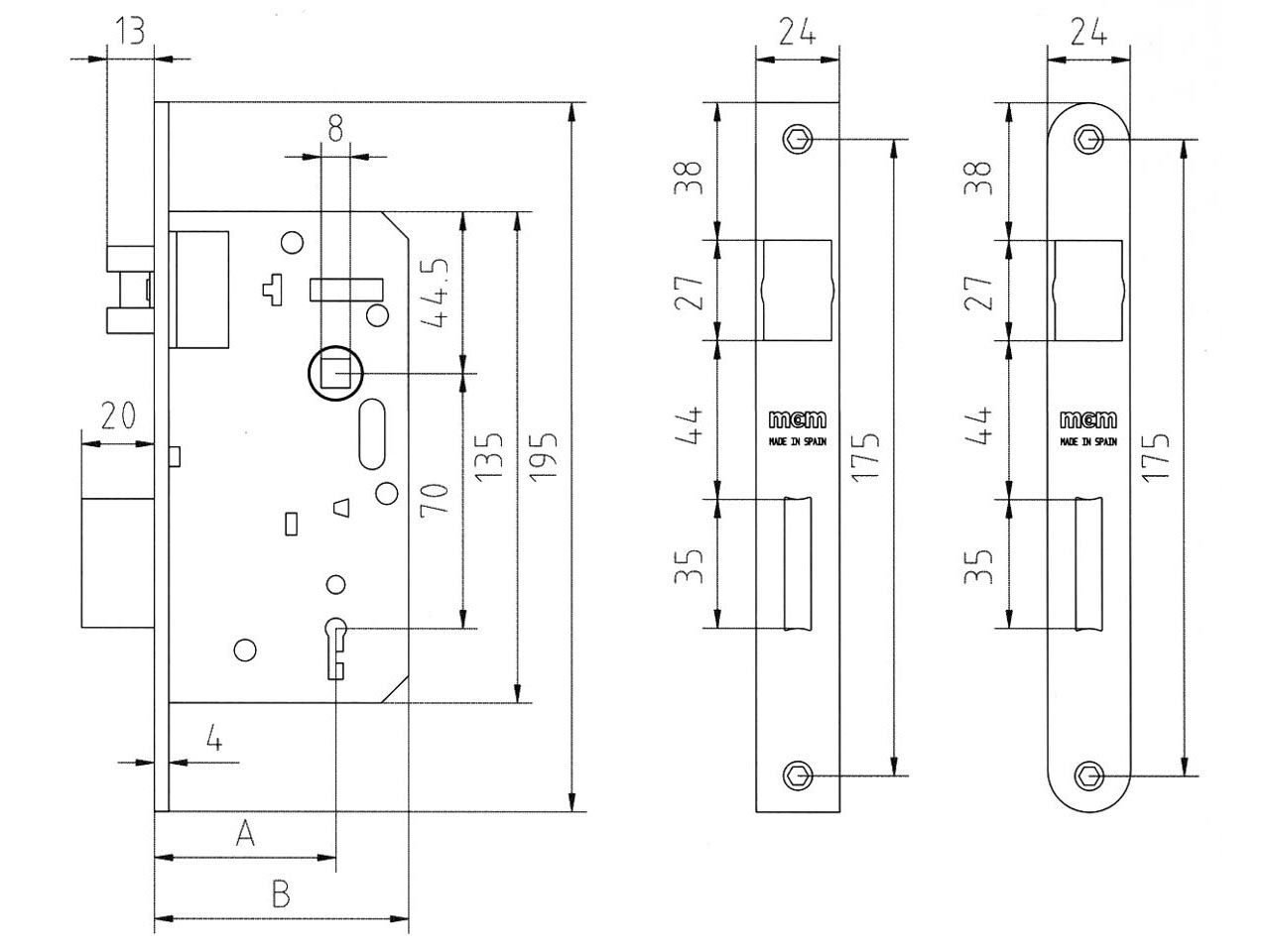 >Picaporte silencioso reversible, palanca reforzada a 1 vuelta y 1 llave. Funcionamiento: La palanca con la llave por ambos lados, el picaporte con la manilla o la llave por ambos lados.