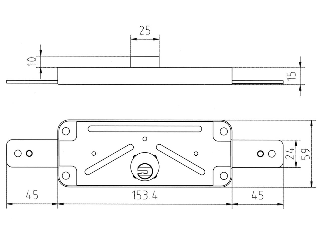 >Cerradura de sobreponer reforzada con cilindro de alta seguridad de 3 pitones para puertas enrollables y basculantes.#Funcionamiento: Las palancas con la llave por ambos lados.
