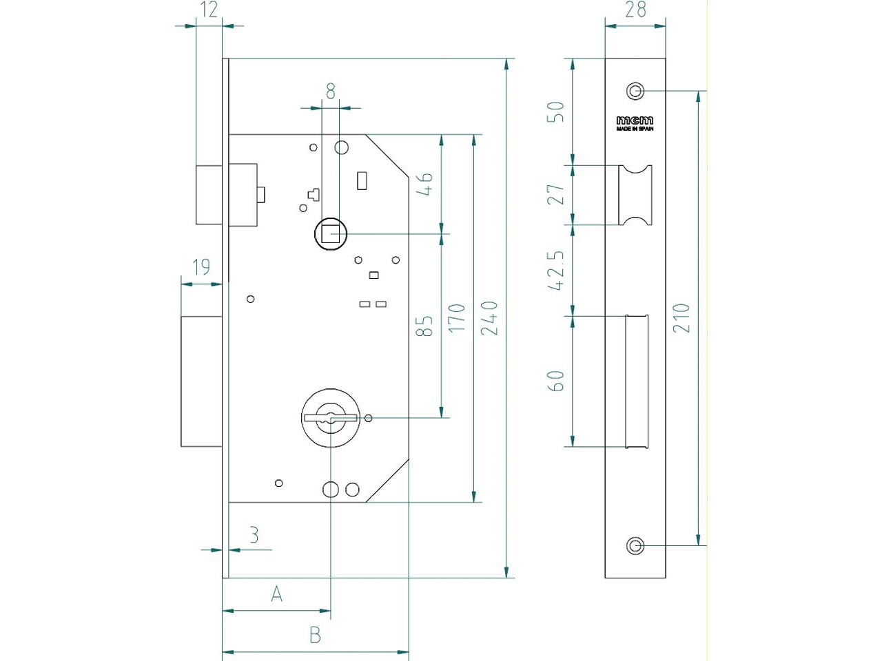 >Frente de latón. Sistema con 6 borjas de alta precision. Picaporte reversible y accionable mediante manilla o llave.