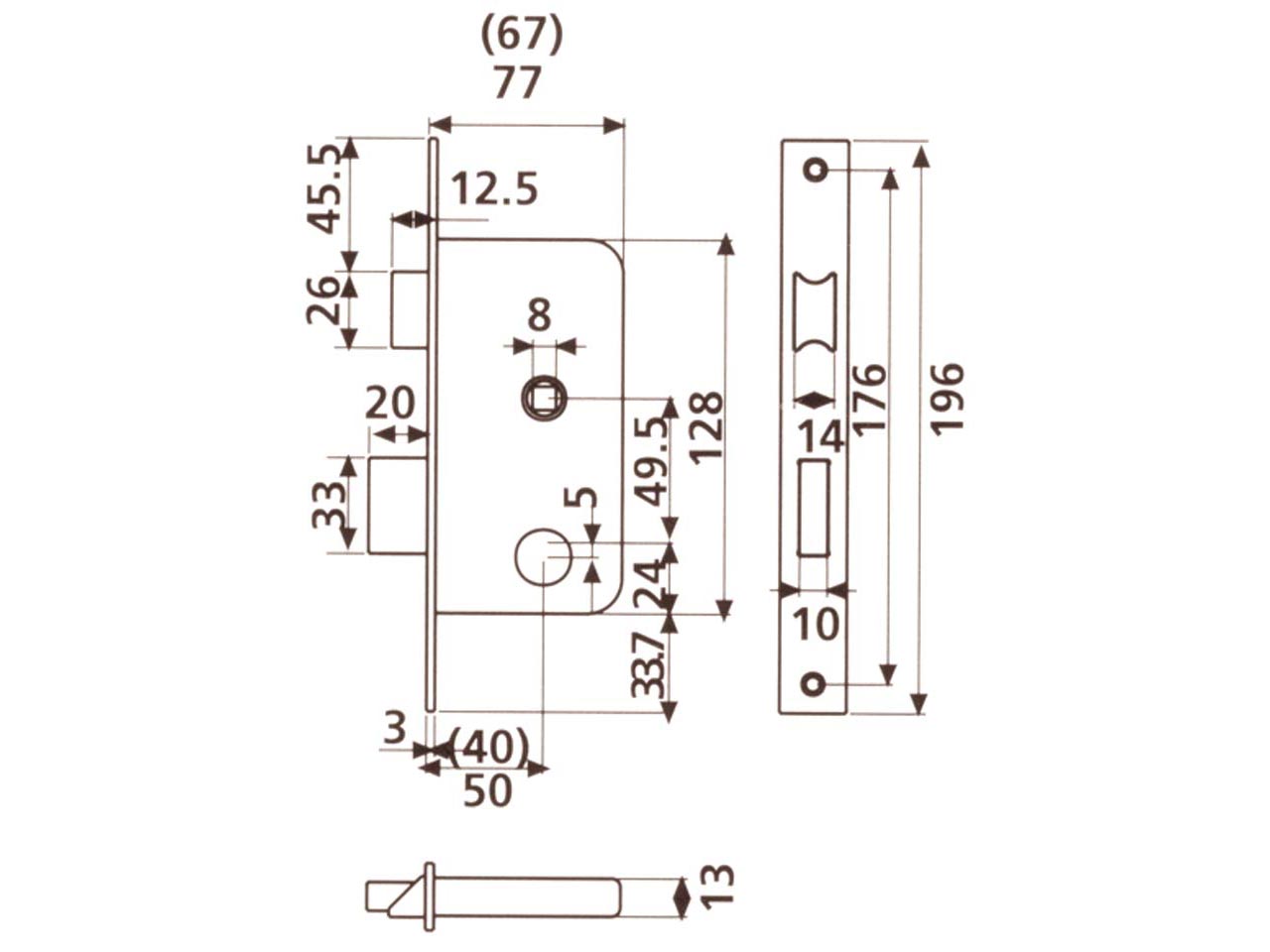 >Picaporte reversible. Nueca de 8mm. Funcionamiento: El cilindro acciona la palanca(1 vueltas) y el picaporte. La nueca acciona el picaporte.