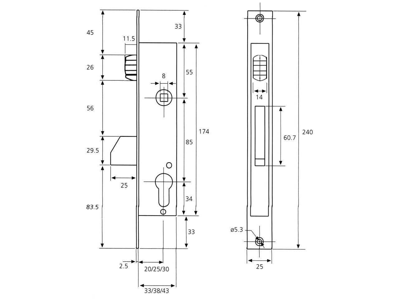 >Entrada vaivén. Nueca 8mm. Palanca basculante de 25mm. con mecanismo antipalanca.Funcionamiento: El cilindro acciona la palanca. La manilla acciona el rodillo.