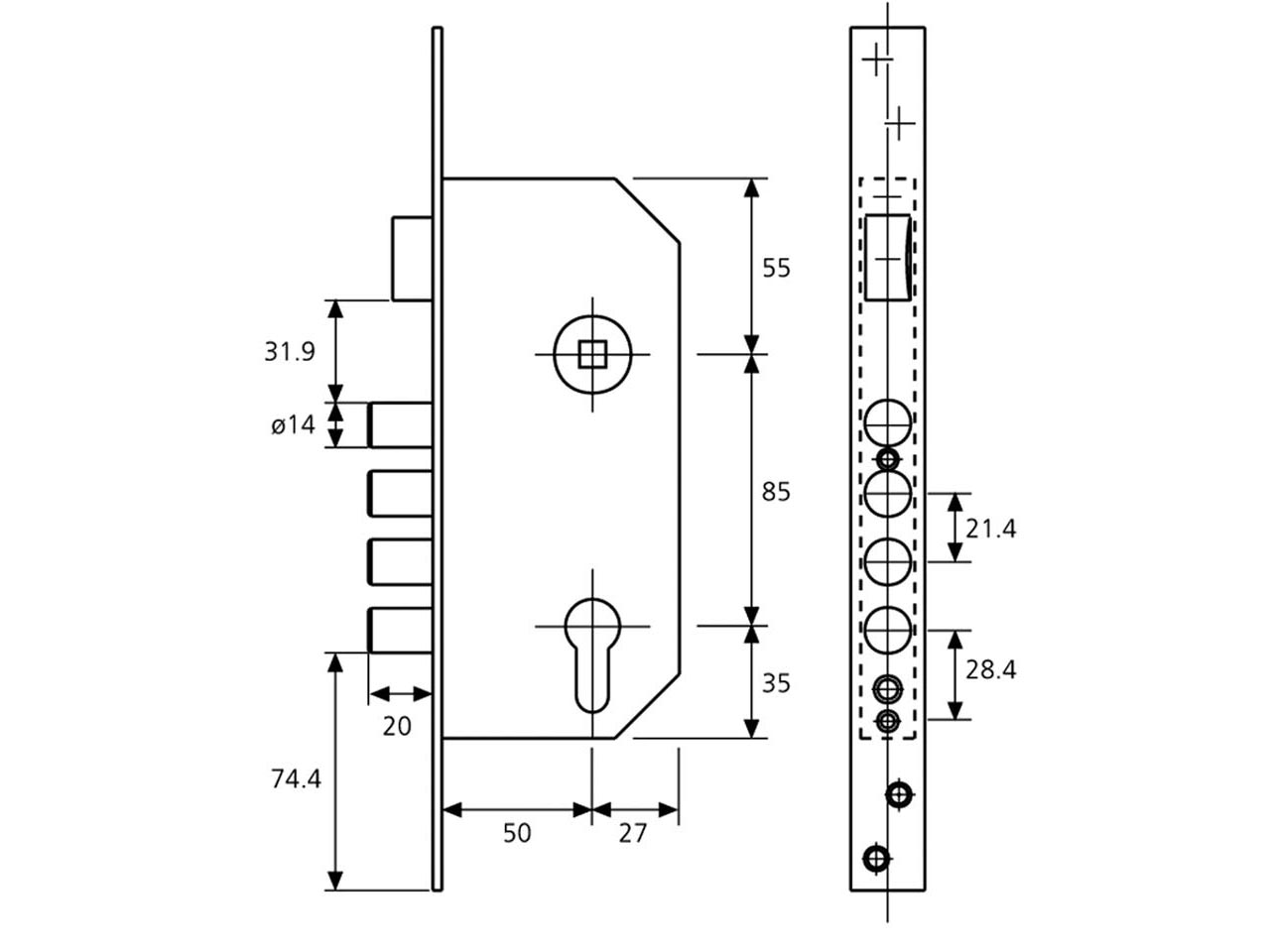 >Cuatro bulones de acero niquelado de 14mm. Mecanismo protegido en caja cerrada de acero. Escudo de seguridad E300L.