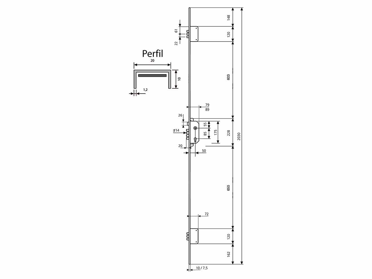 >Bulones de acero niquelado 14mm. Frente de acero perfil U de elevada rigidez. Mecanismos protegidos en cajas cerradas de acero galvanizado. Escudo de seguridad E-700L. Mecanismo de los reenvios con sistema patentado antiretorno.