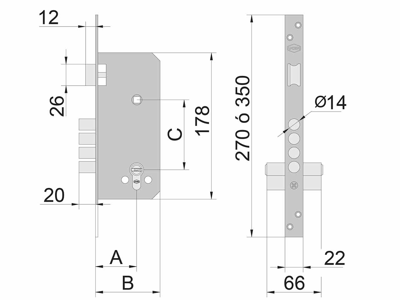 >Cerradura de 1 punto, frontal de cierre de picaporte y bulones. Distancia entre ejes de 85 mm. Entrada de 50mm. 2 vueltas de cierre. Incorpora escudo de seguridad 2000 EP. Incorpora cilindro de seguridad 2000SN de 60mm