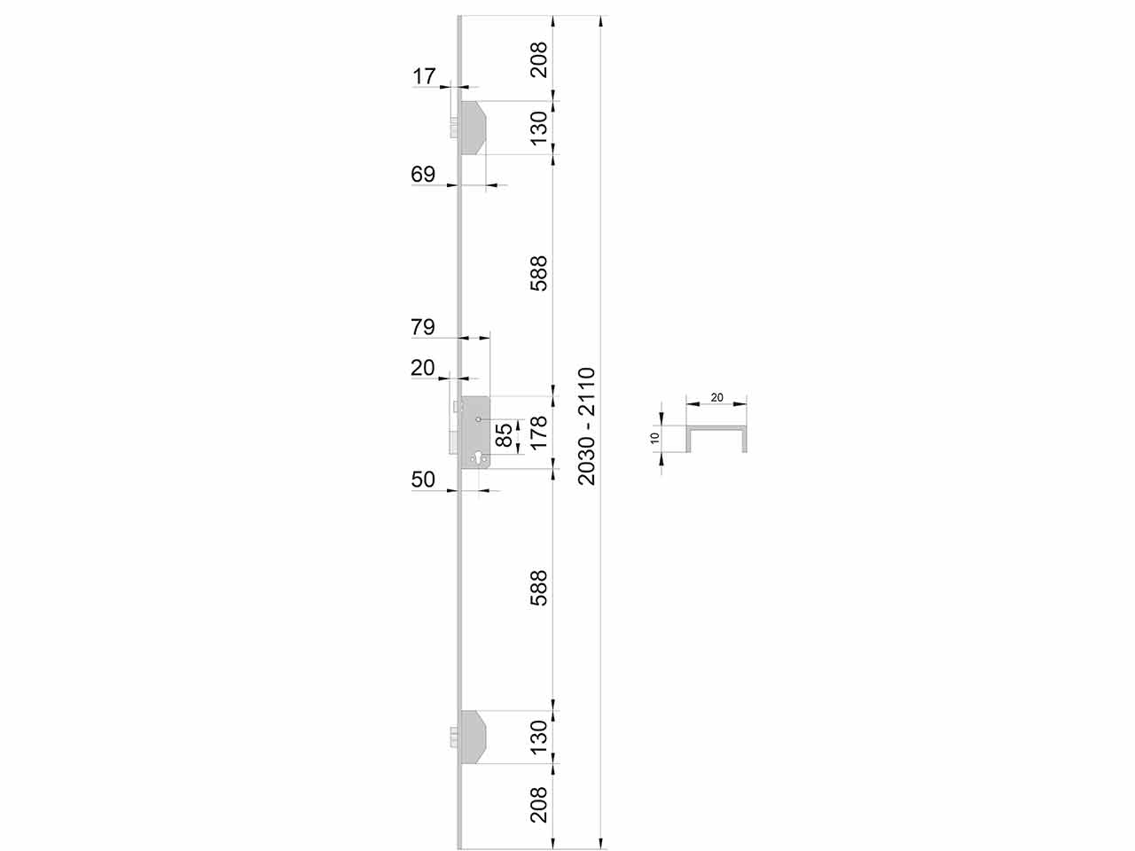 >Cerradura de seguridad de 3 puntos de cierre. Sistema de cierre de caja central mediante palanca, puntos alto/bajo mediante bulones. Frente en acero de 20x10mm. Entrada de 50mm y 2 vueltas de cierre. Incorpora cilindro de seguridad 2000SN de 60mm. Incorpora escudo de seguridad 2000 EP.