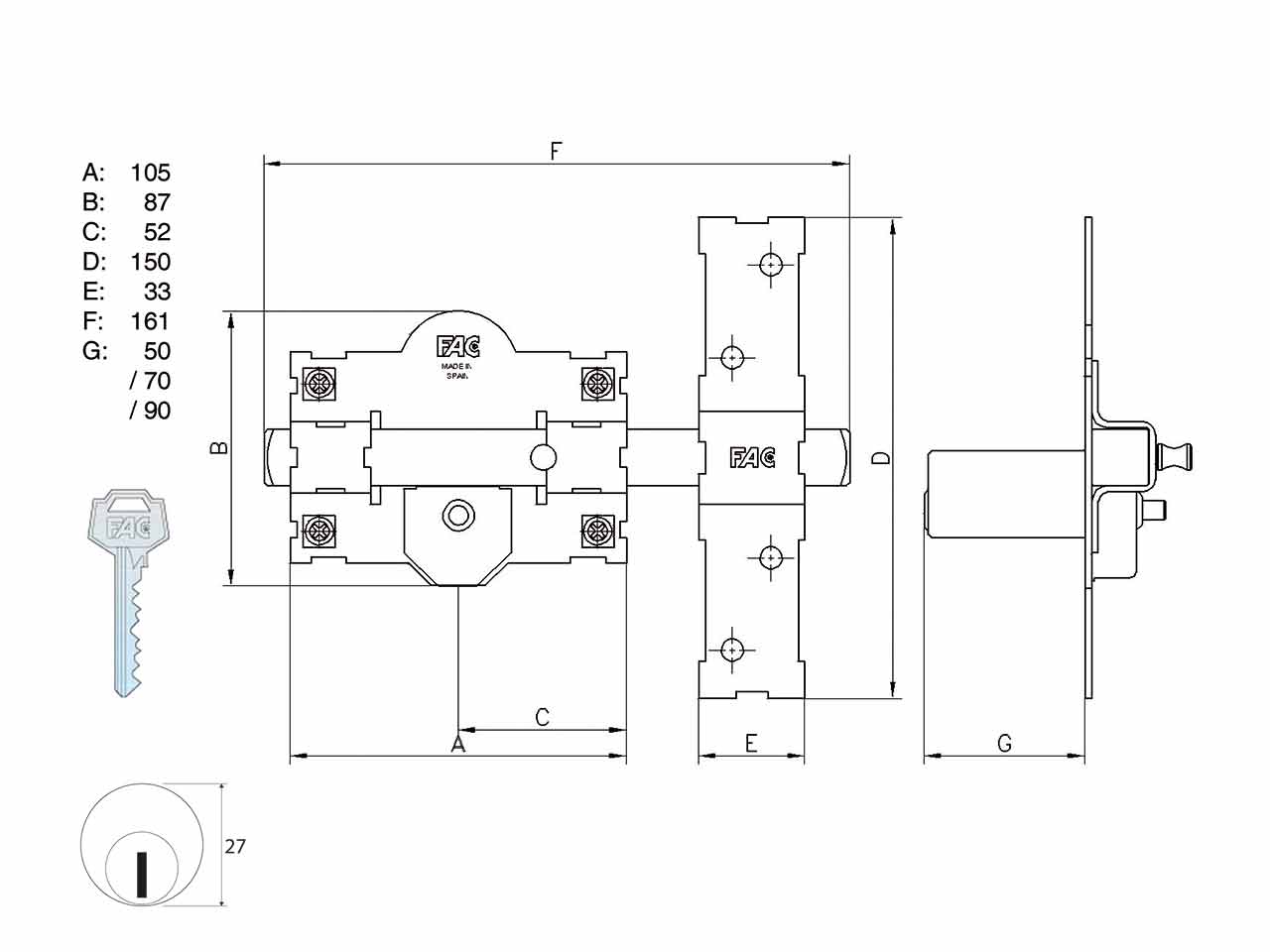 | 175330 | 01561 | Niquelado | 70 mm. |