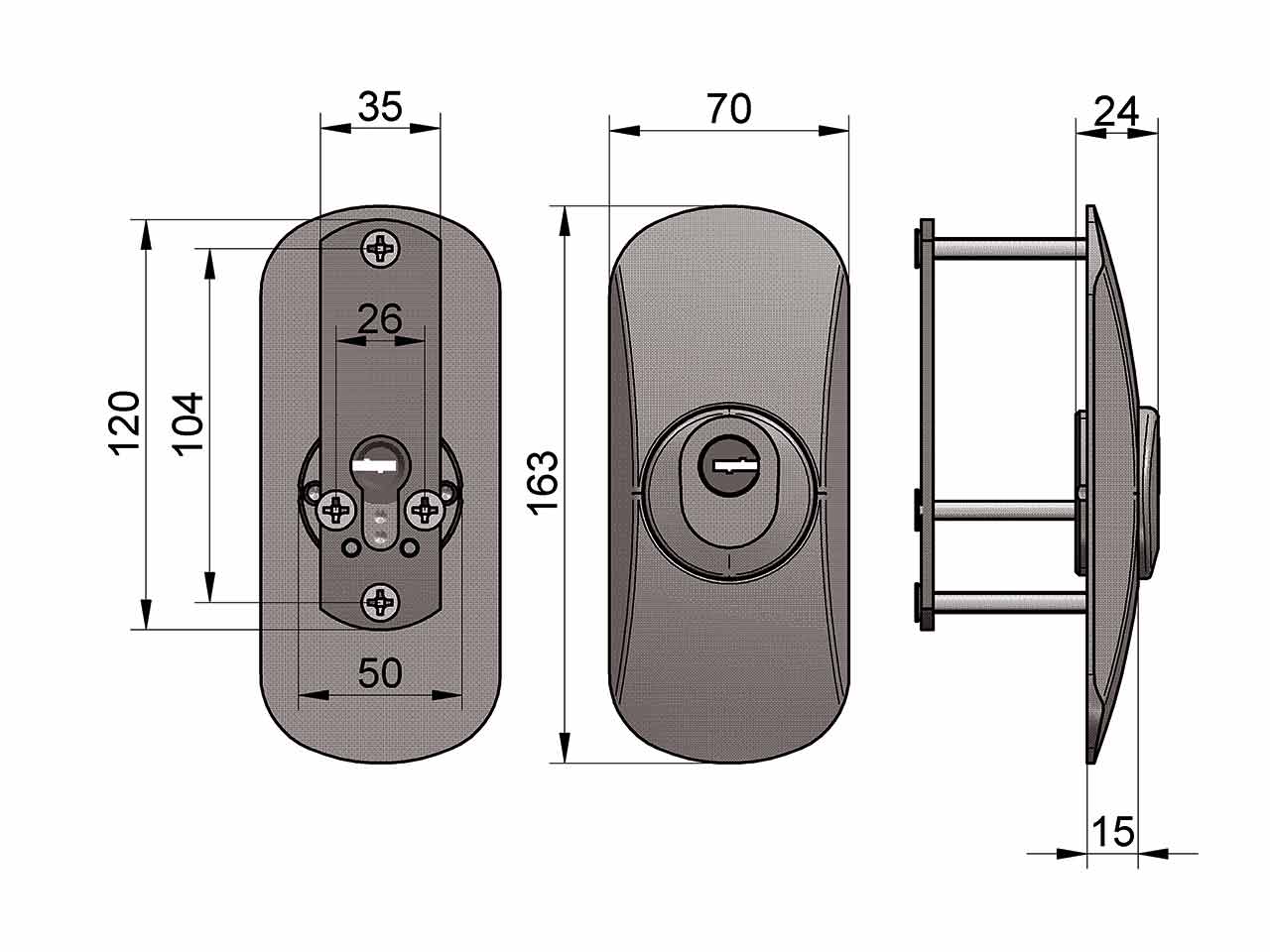 >Escudo protector alta seguridad contra ataques de taladrado, extracción, fresado, apalancamiento... Compuesto por una placa base fabricada en acero macizo y un escudo nucleo en acero macizo carbonitrurado con incrustaciones de bolas de acero.