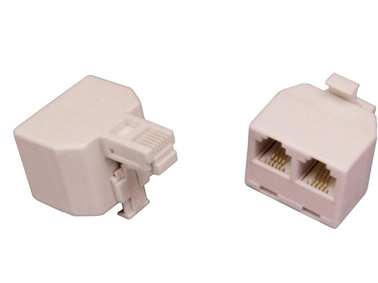 ADAPTADOR TELEFÓNICO 1 MACHO 2 HEMBRAS BLANCO