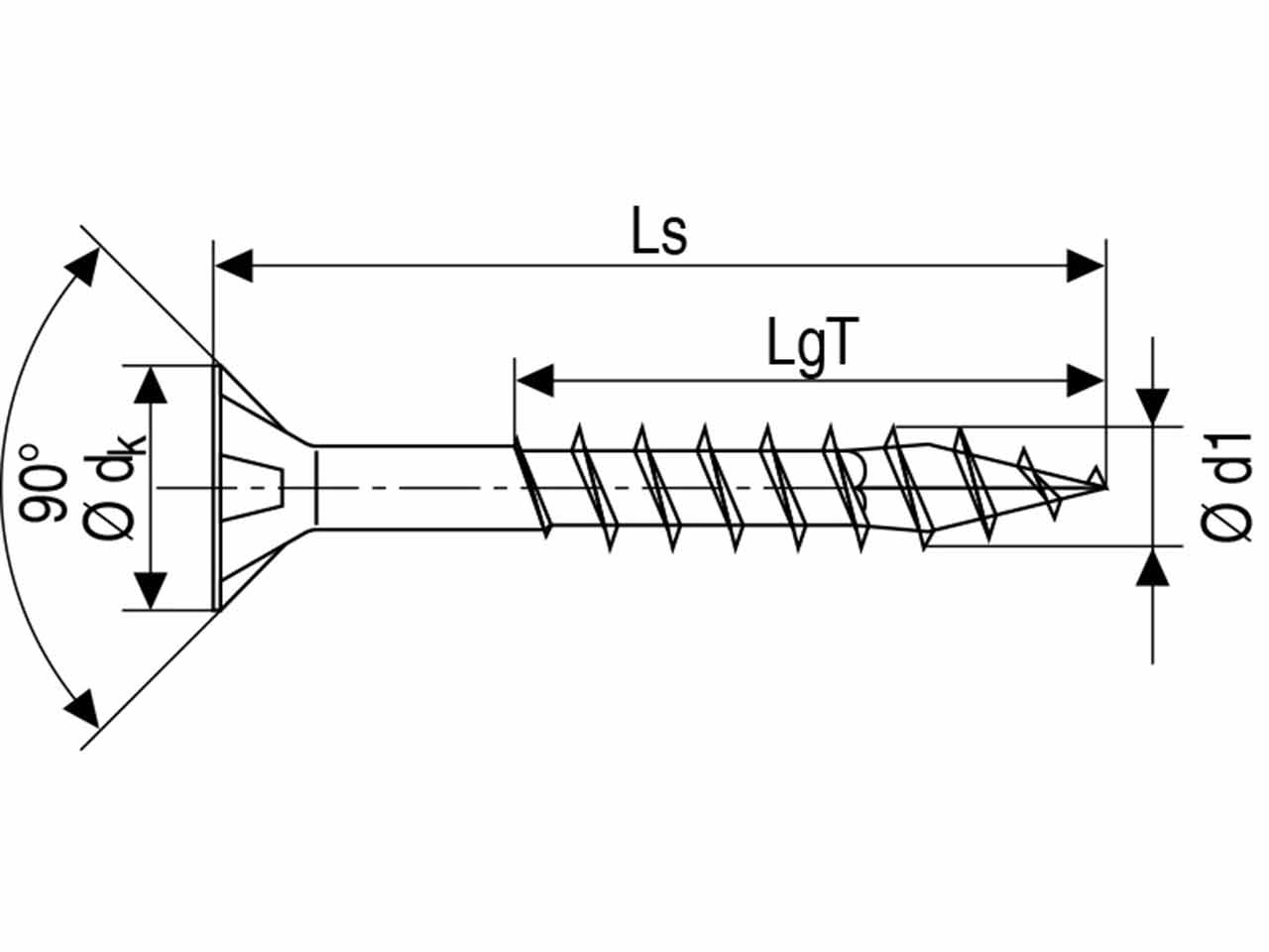 >Rosca parcial. Sin necesidad de perforación previa (en función de la madera)