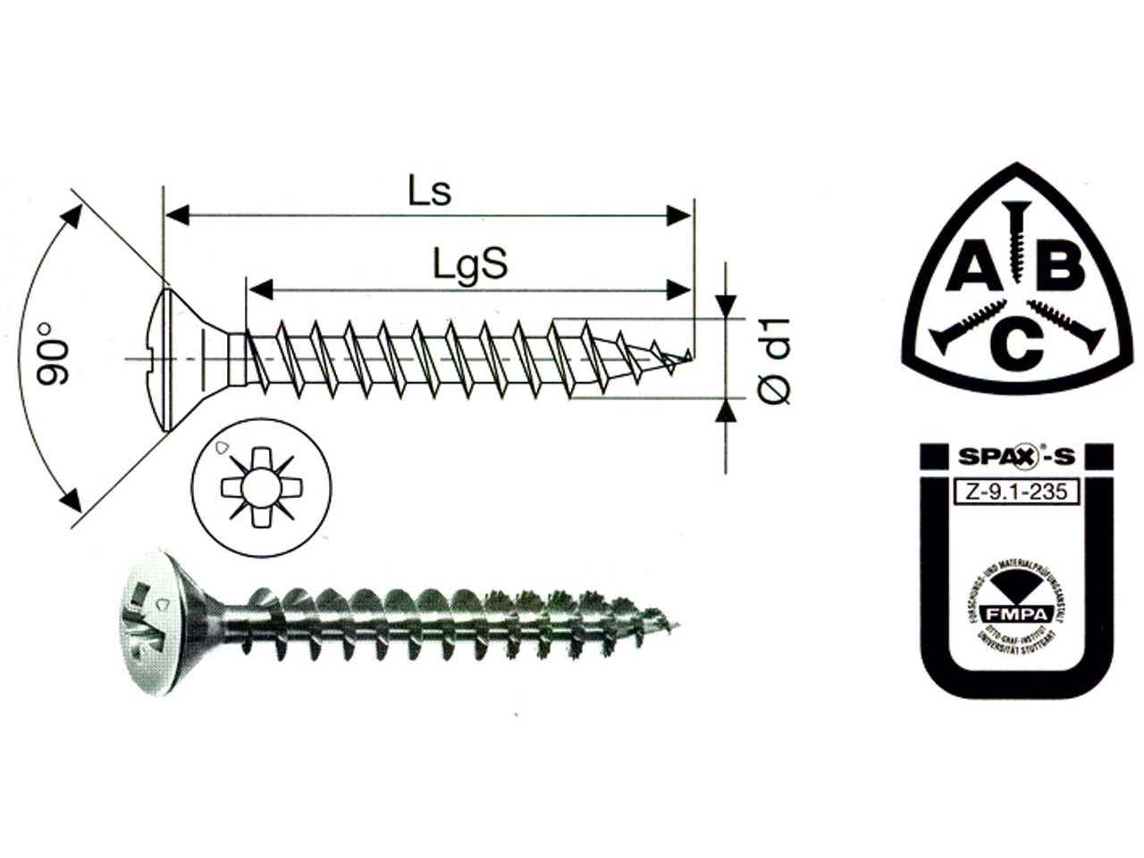 TIRAFONDO SPAX UNIVERSAL CABEZA PLANA TORX ZINCADO ROSCA 6 mm.