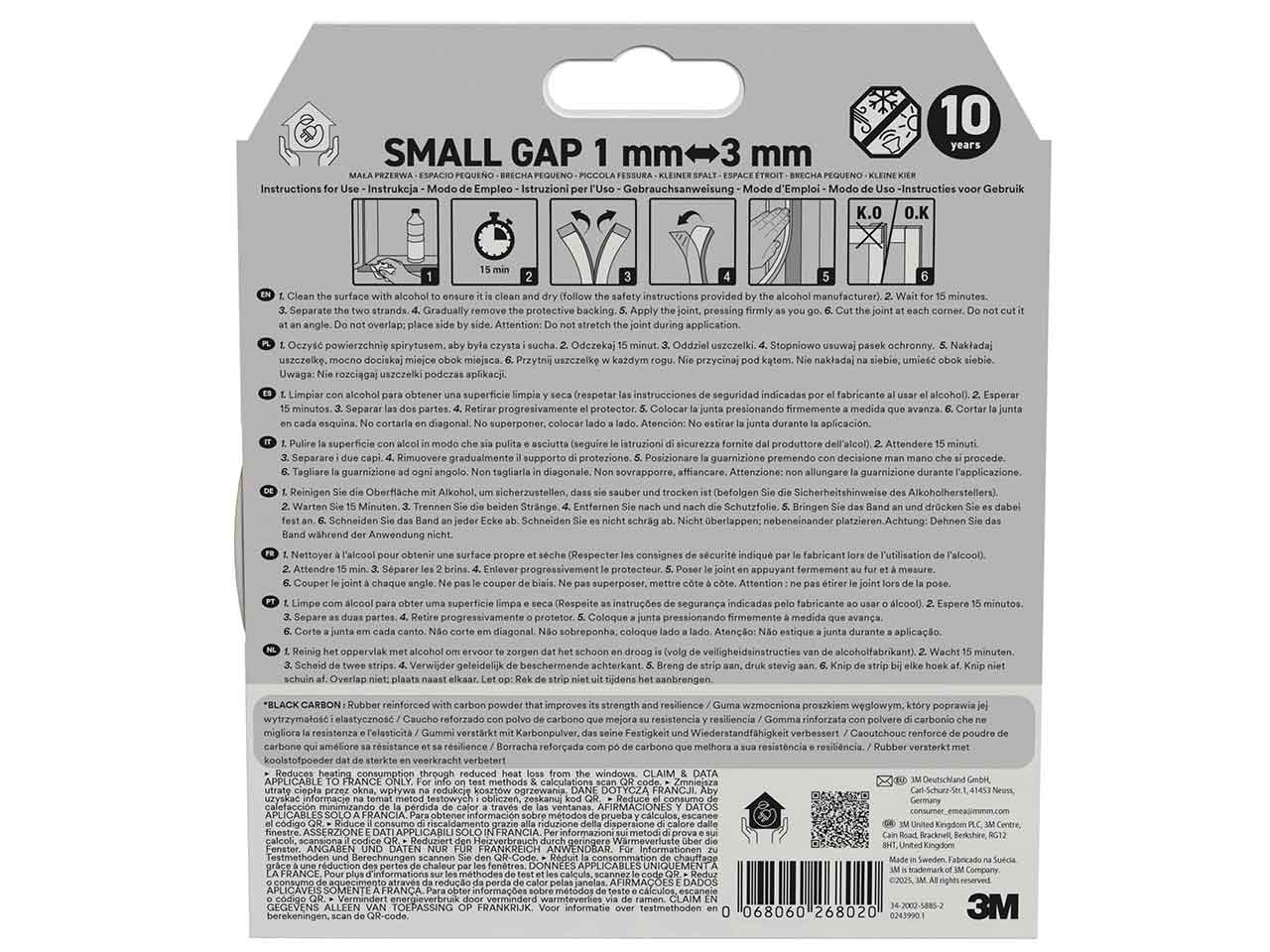 >CAUCHO EDPM NEGRO SUPERIOR CON CARBONO PARA SELLADO DE HUECOS para todo tipo de ventanas y puertas. AISLAMIENTO EFECTIVO: bloquean eficazmente las corrientes de aire, reducen el ruido y protegen contra los elementos externos, mejorando el confort interior y el ahorro de energía. INSTALACIÓN FÁCIL. DISEÑO DURADERO: soporta hasta 75,000 aperturas y cierres, esta espuma de aislamiento 3M con resistencia a los rayos UV ofrece una solución duradera y de larga duración, asegurando un rendimiento de aislamiento constante por hasta 10 años. Para ventanas y puertas hechas de madera, PVC, aluminio