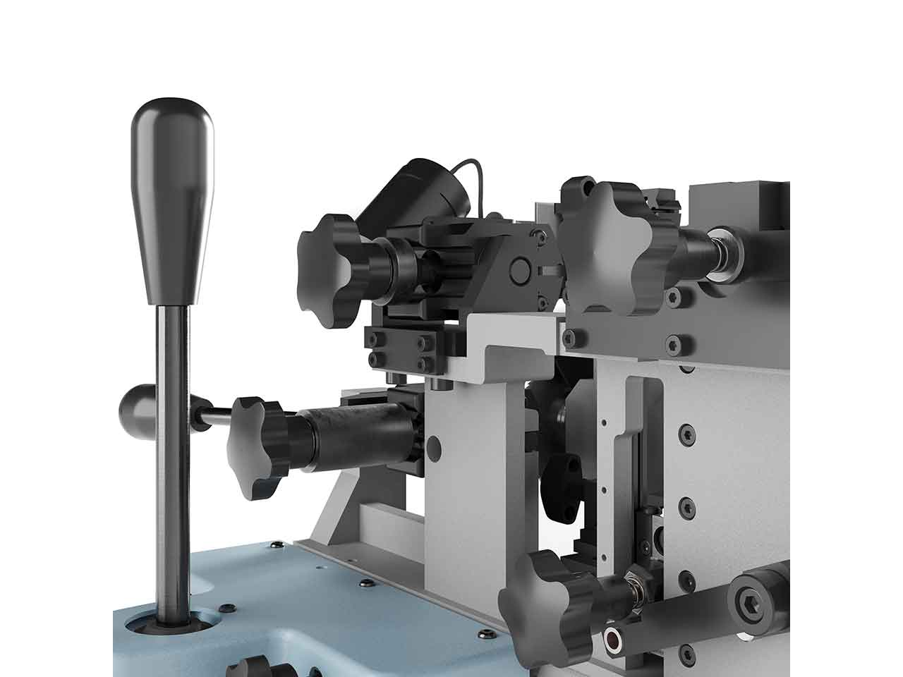 >Especial llaves largas (Cajas fuertes). Duplica llaves de gorja de simple y doble paletón, frontales y ranuras verticales, todo ello con un único carro. Control de los movimientos X e Y del carro mediante una sola palanca.