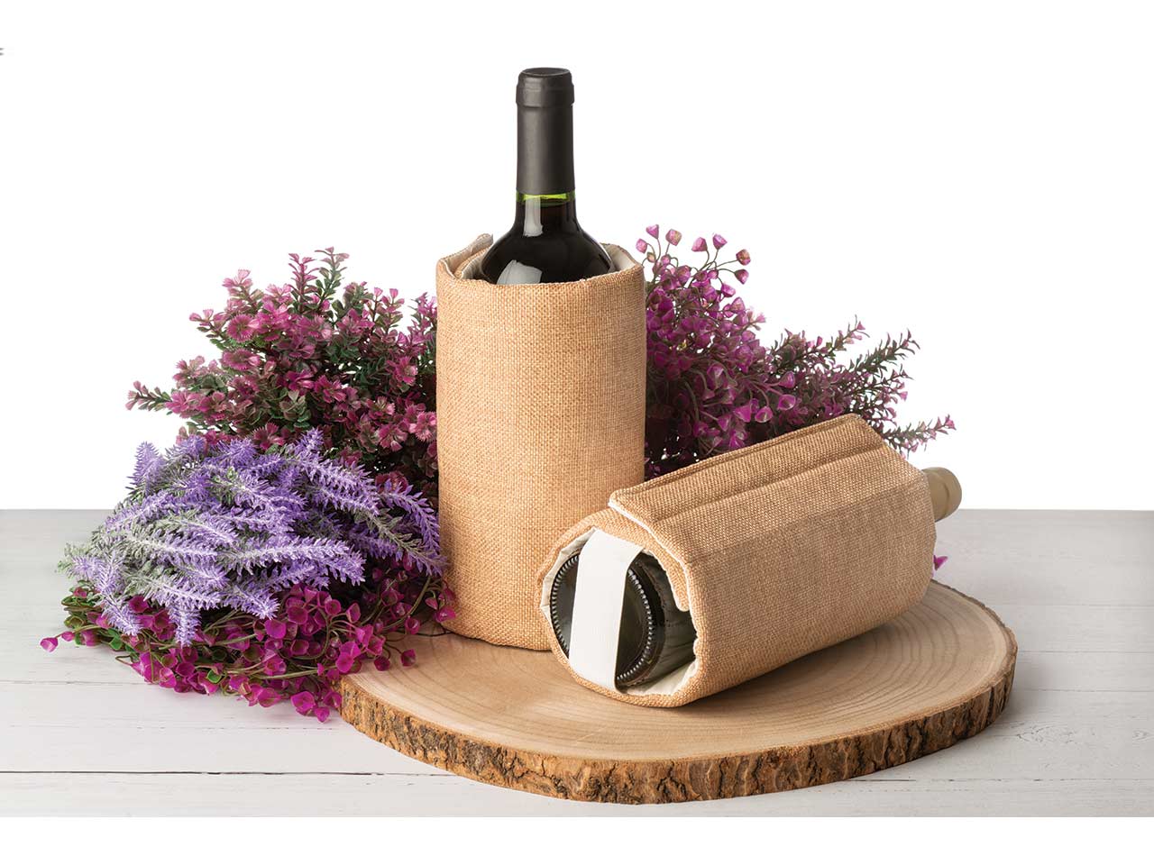 >Medidas: 400x200x40 mm. Peso: 0,300 kg. Enfriador 4 capas: Yute, poliéster, foam, velcro y algodón reciclado. Tienen en su interior un gel de rápido enfriamiento extraíble, que enfría la bebida en minutos y la mantiene fría durante horas.