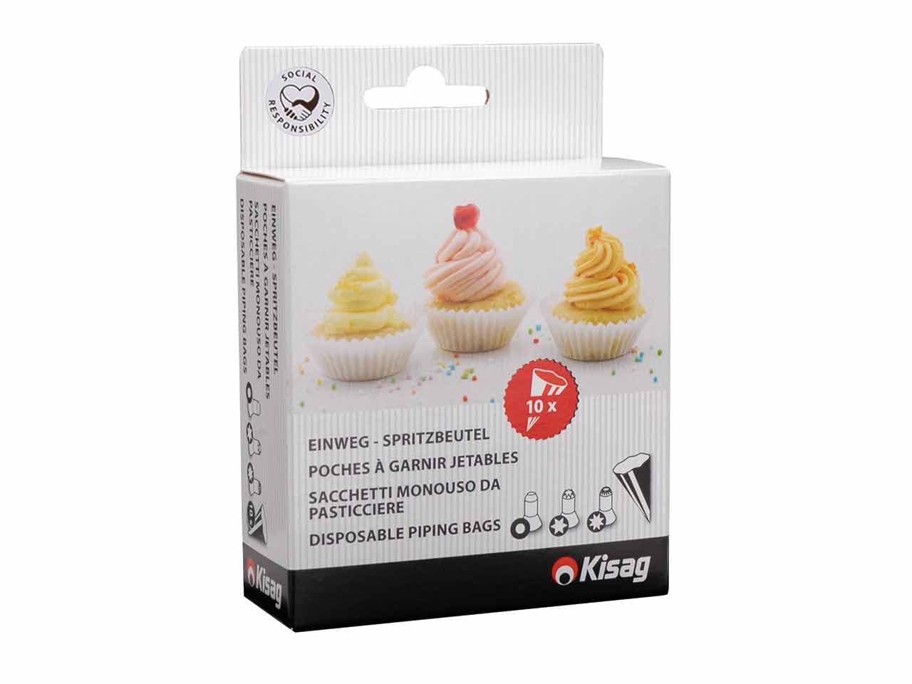 Catálogo / Menaje / Accesorios para repostería / Manga pastelera monouso 10 bolsas con 3 boquillas 34x24cm kisag