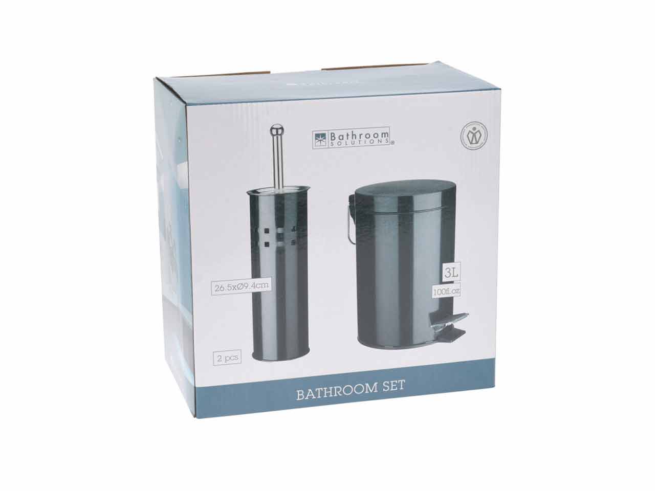 SET BAÑO PAPELERA C/PEDAL 3L Y ESCOBILLA ACERO INOX