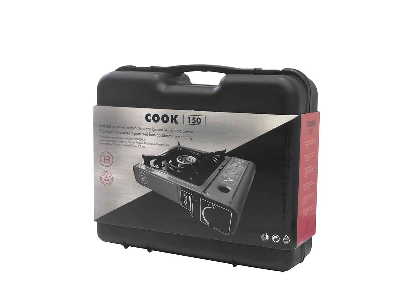 >Funciona con cartucho estandar de 227 gr. Cuerpo de acero inoxidable con entradas de aire laterales, quemador con base ensanchada para protección cortaviento. Botón de bloqueo. CARACTERISTICAS: Potencia: 2,2 Kw 7650 btu. Consumo Aprox. : 150 g/h