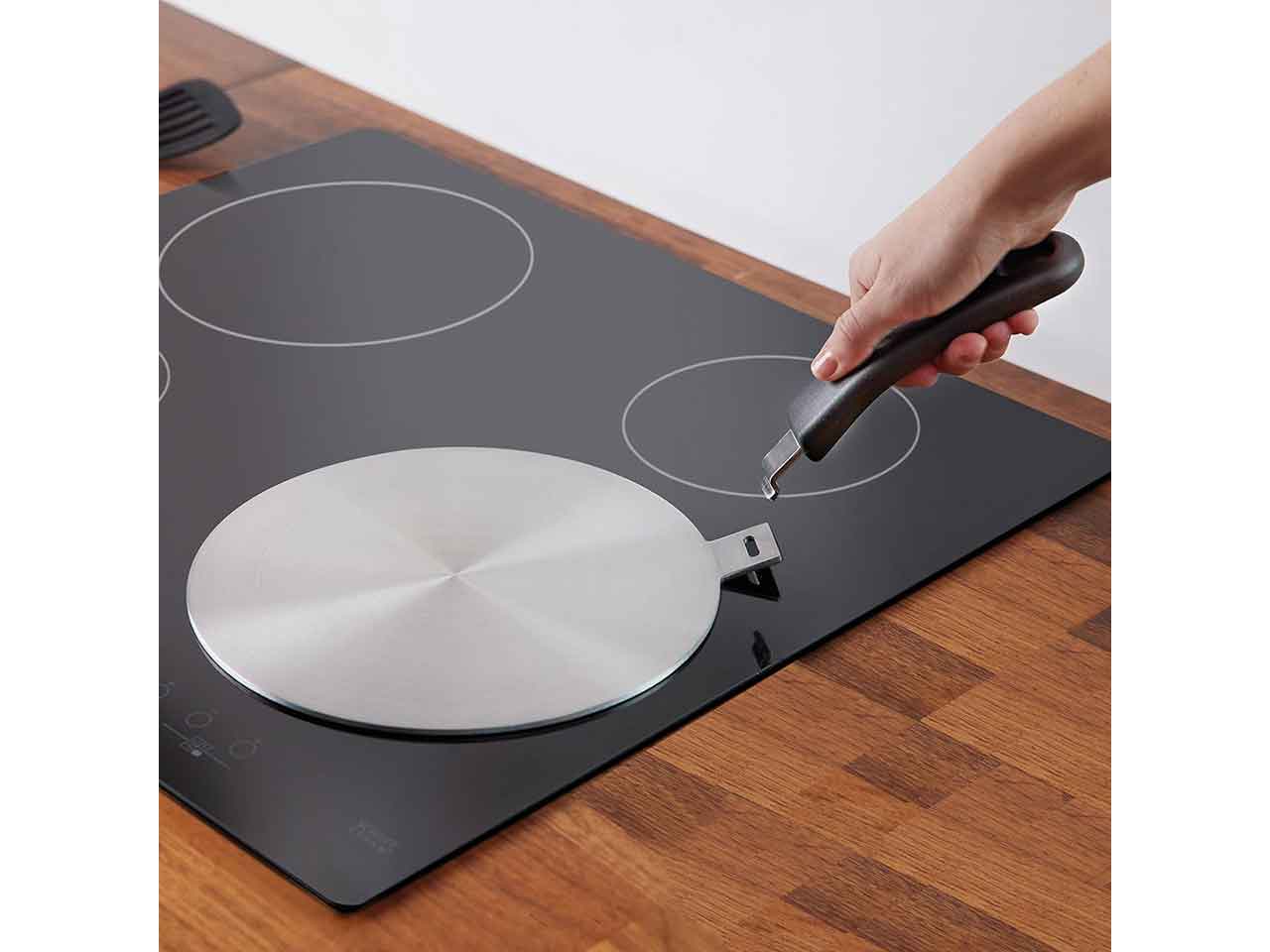 >Placa adaptadora a inducción, para ollas y sartenes no magnéticas. Mango desmontable con aislamiento térmico. Para utensilios de cocina de aluminio, acero inoxidable, esmalte, hierro fundido, vitrocerámica, cerámica, etc. Material: Acero inox, aluminio. Propiedades: apto para lavavajillas