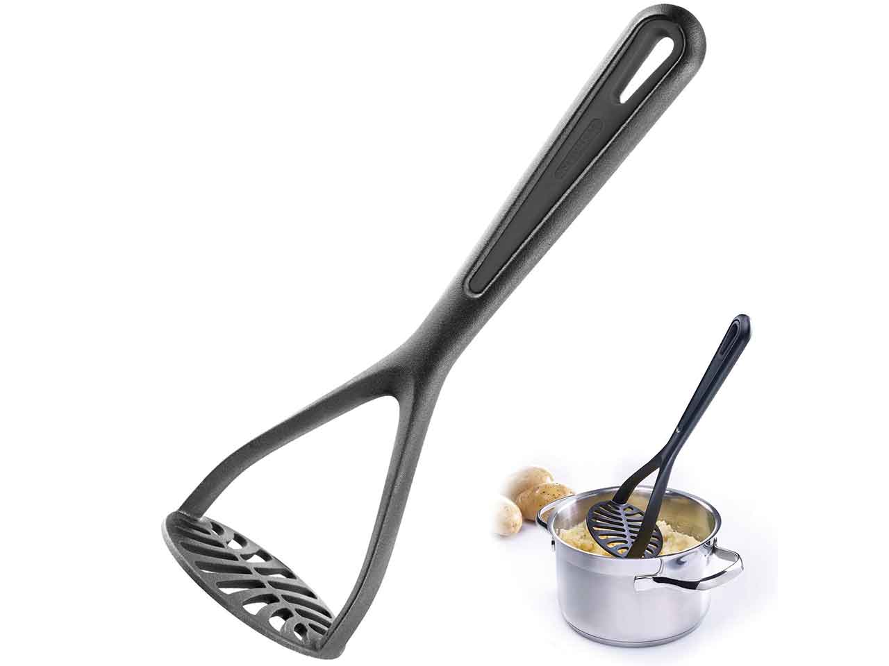 >Medidas: 275 x 85 x 85 mm. Propiedades: Apto para lavavajillas. Made in Germany. 5 años garantía. Sín BPA. Material: PP. Mazo para patatas de polipropileno de alta calidad. Ideales para ollas y sartenes con revestimiento antiadherente Resistente a temperaturas de hasta 90°C.