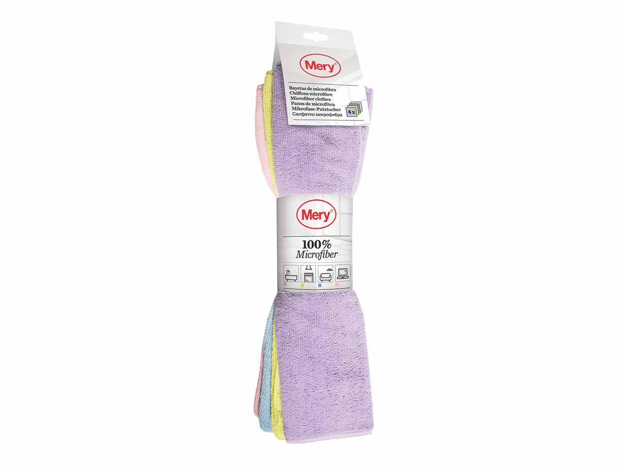 >Superresistentes. Set 4 bayetas multiusos, fabricadas al 100% con microfibra. Lavables a 60º y compatibles con lejía. Medidas de 38x36 cm. Secan rápidamente sin dejar rastros, y son súper absorbentes, siendo capaces de absorber 10 veces su peso en agua